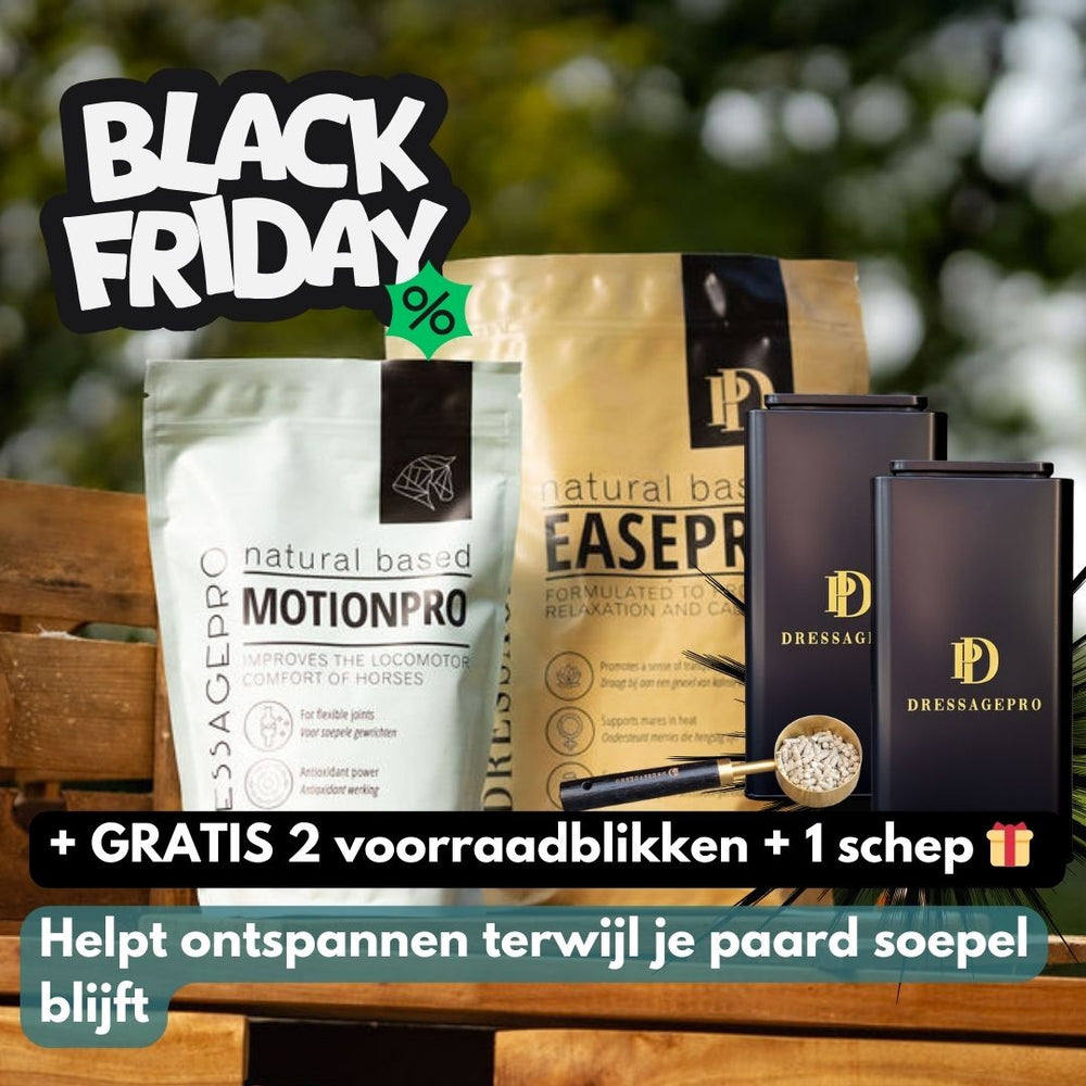 Onze webshop met paardensupplementen biedt een ruime keuze aan producten voor verschillende ondersteuningsbehoeften. Onze bestsellers zijn GastriPro, MotionPro en EasePro, die elk bijdragen aan de gezondheid en het welzijn van je paard. GastriPro ondersteunt een gezonde maag en darmflora, MotionPro stimuleert soepele spieren en gewrichten, en EasePro draagt bij aan het verminderen van stress bij je paard. Al onze supplementen zijn op natuurlijke basis en GMO-vrij, zodat je ze zonder zorgen kunt inzetten, zelfs tijdens het wedstrijdseizoen. Of je nu zoekt naar paardensupplementen voor het maag-darmkanaal, voor soepel bewegen of voor een ontspannen gemoedstoestand, je kunt ze allemaal bestellen in onze webshop.