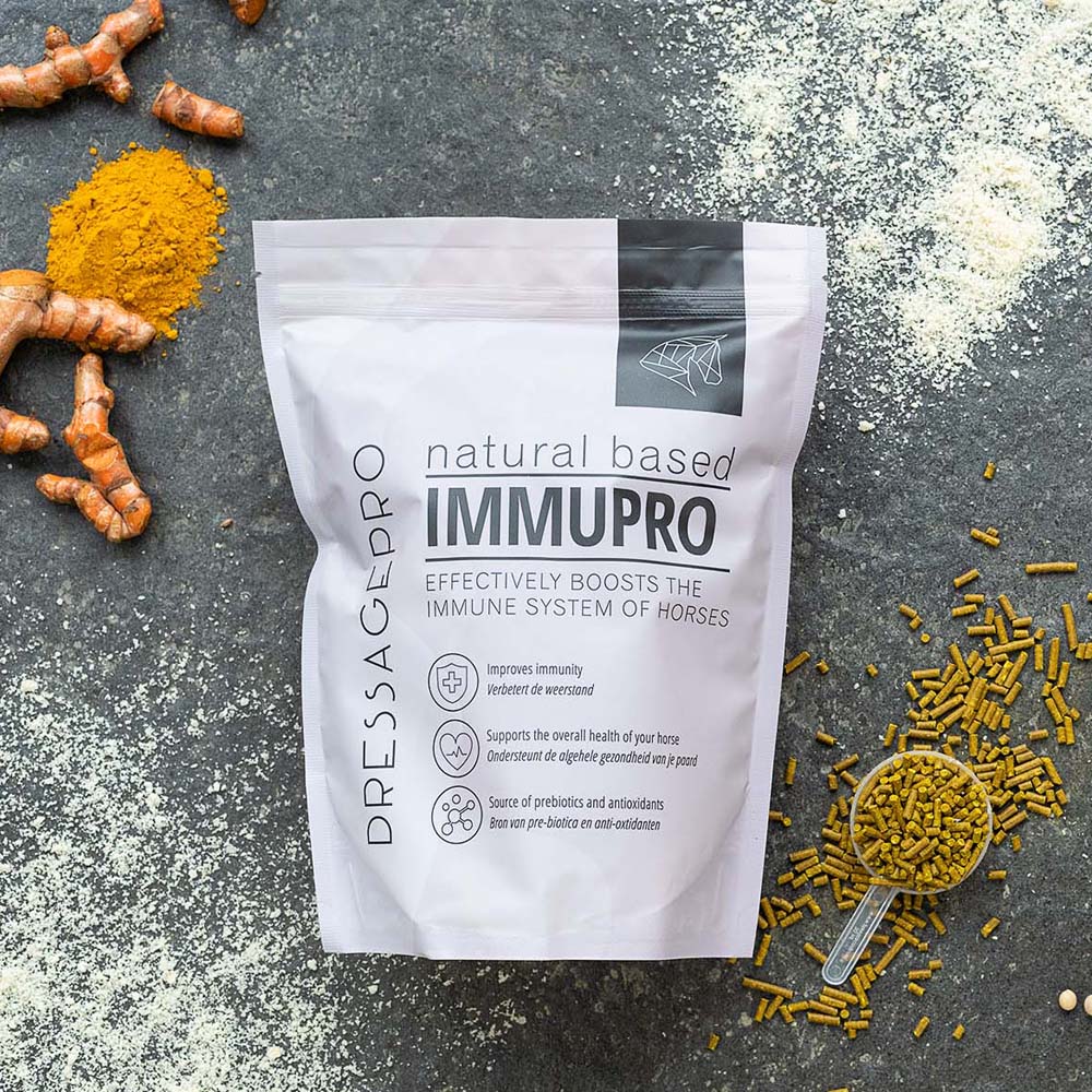Samen helpen deze ingrediënten om de darmen gezond te houden, ontstekingen te verminderen, en het immuunsysteem van paarden te versterken, zodat ze gezonder en minder vatbaar voor ziektes zijn.Je kunt ImmuPro inzetten:✅ Om de weerstand te verhogen en te ondersteunenAls je paard een zwak immuunsysteem heeft wordt hij vatbaarder voor allerlei vervelende bacterien, virussen en parasieten. Denk hierbij aan klachten zoals luchtwegproblemen of huidproblemen zoals mok. Daarom is het zo belangrijk om te zorgen voor een sterke weerstand!