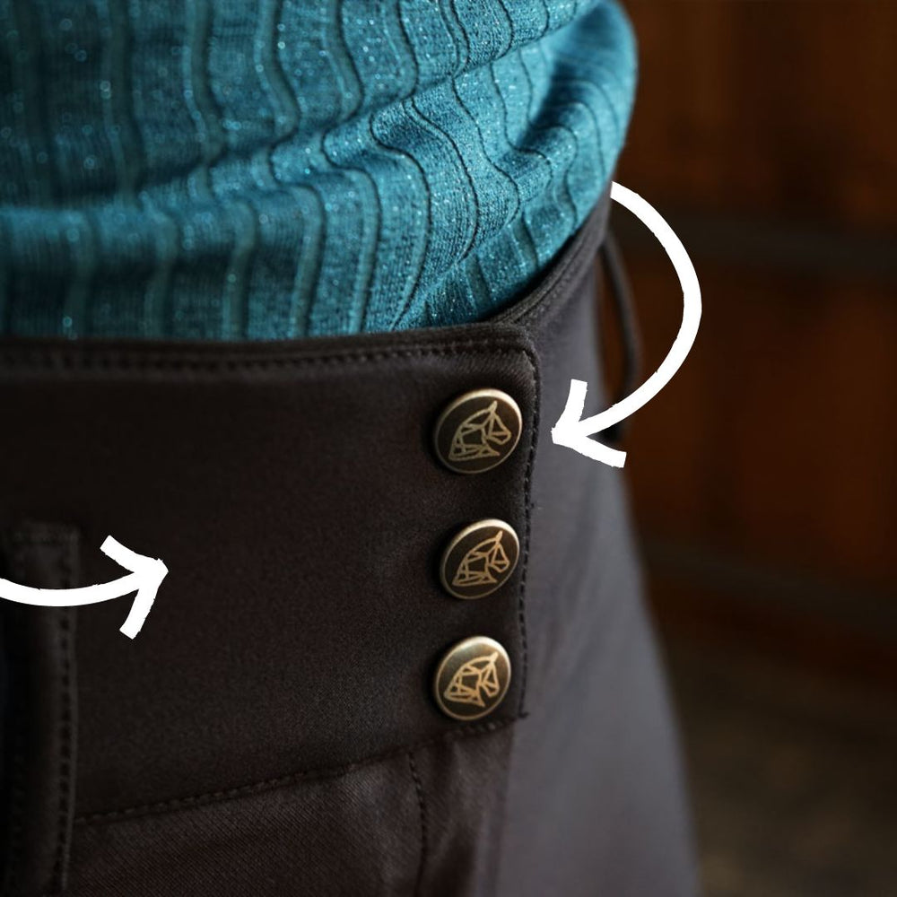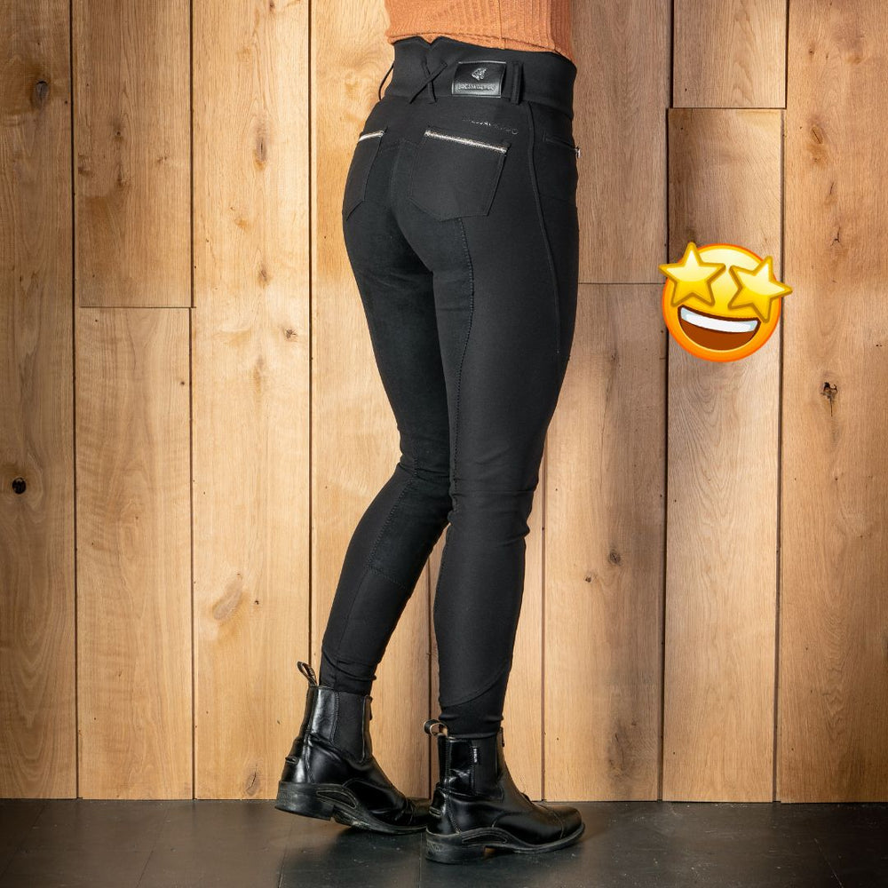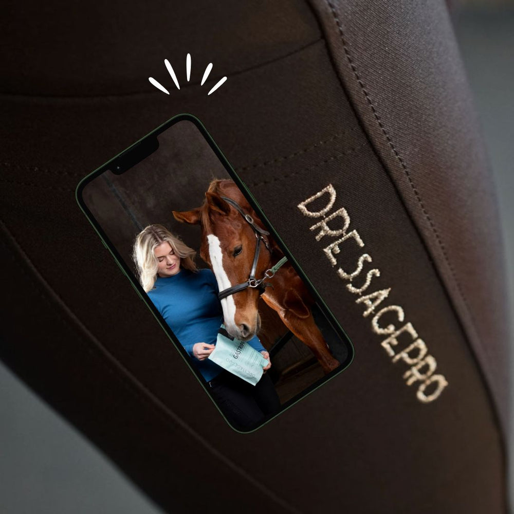 De rijbroek is voorzien van handige diepe telefoonzakken aan beide zijkanten van het bovenbeen.