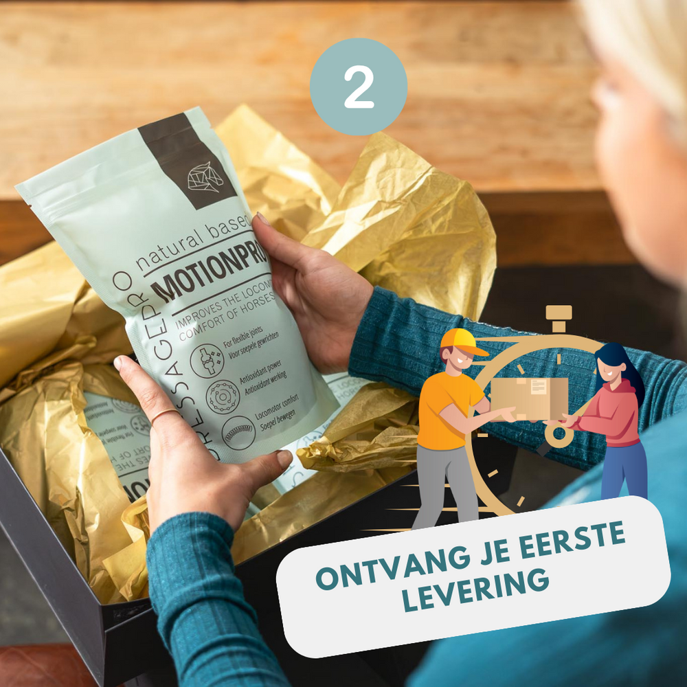 Your horse deserves the best, but you also deserve some ease in your life! We horse owners are busy enough as it is. That's why we take the worries off your hands with this subscription for the supplements. This means that you will receive your supplements at home every three months. Completely automatically, we take care of everything.